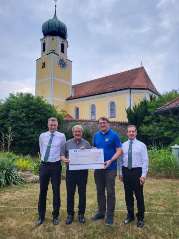 Bild v. l.: 2. Vorstand Andreas Sachs, Pfarrer Werner Gallmeier, Jugendleiter Michael Laumer und 1. Vorstand Erwin Poiger freuten sich über die Spende von 700 Euro.
