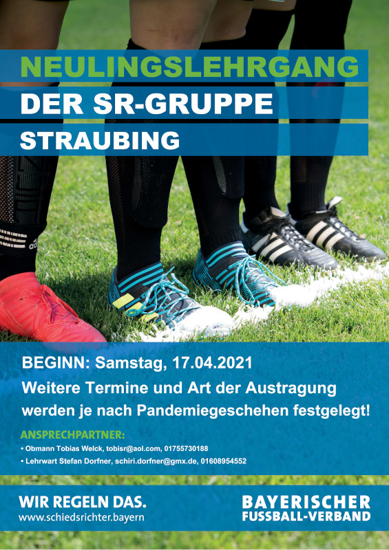 Die Schiedsrichtergruppe Straubing richtet auch im Jahr 2021 wieder einen Neulingskurs aus. Dieser findet ab 17.04.2021 statt. Sollte dieser nicht in Präsenz stattfinden können wird dieser Online durchgeführt.